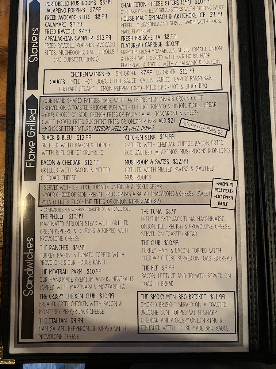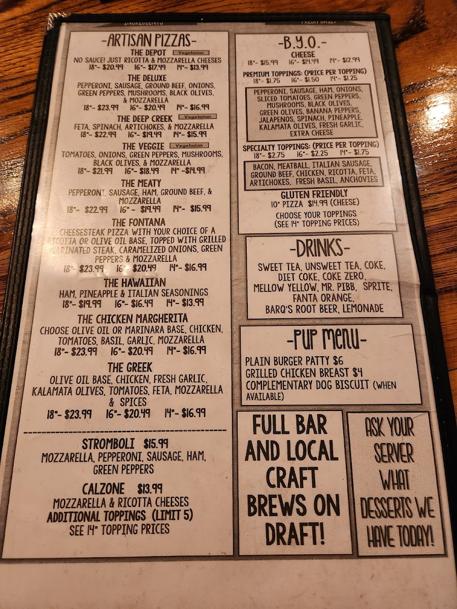 Welcome to DERAILED of Bryson City (Anthonys), a charming eatery nestled at 15 Depot St, that perfectly combines the spirit of local dining with a love for hearty fare. This menu sparkles with enticing sandwiches and gourmet pizzas designed to satisfy every palate. Try the Philly, featuring marinated sirloin steak, grilled peppers, and provolone cheese, or indulge in the Italian classic loaded with ham, salami, and pepperoni. For pizza lovers, selections like the Margherita and the Deep Creek showcase fresh, quality ingredients that promise to delight.